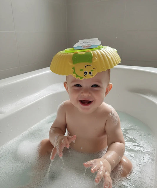 Kidilo Adjustable Baby Shower Cap | Green Dino Bath Visor | Soft Silicone Cap to Keep Water & Shampoo Out of Eyes 0m+
